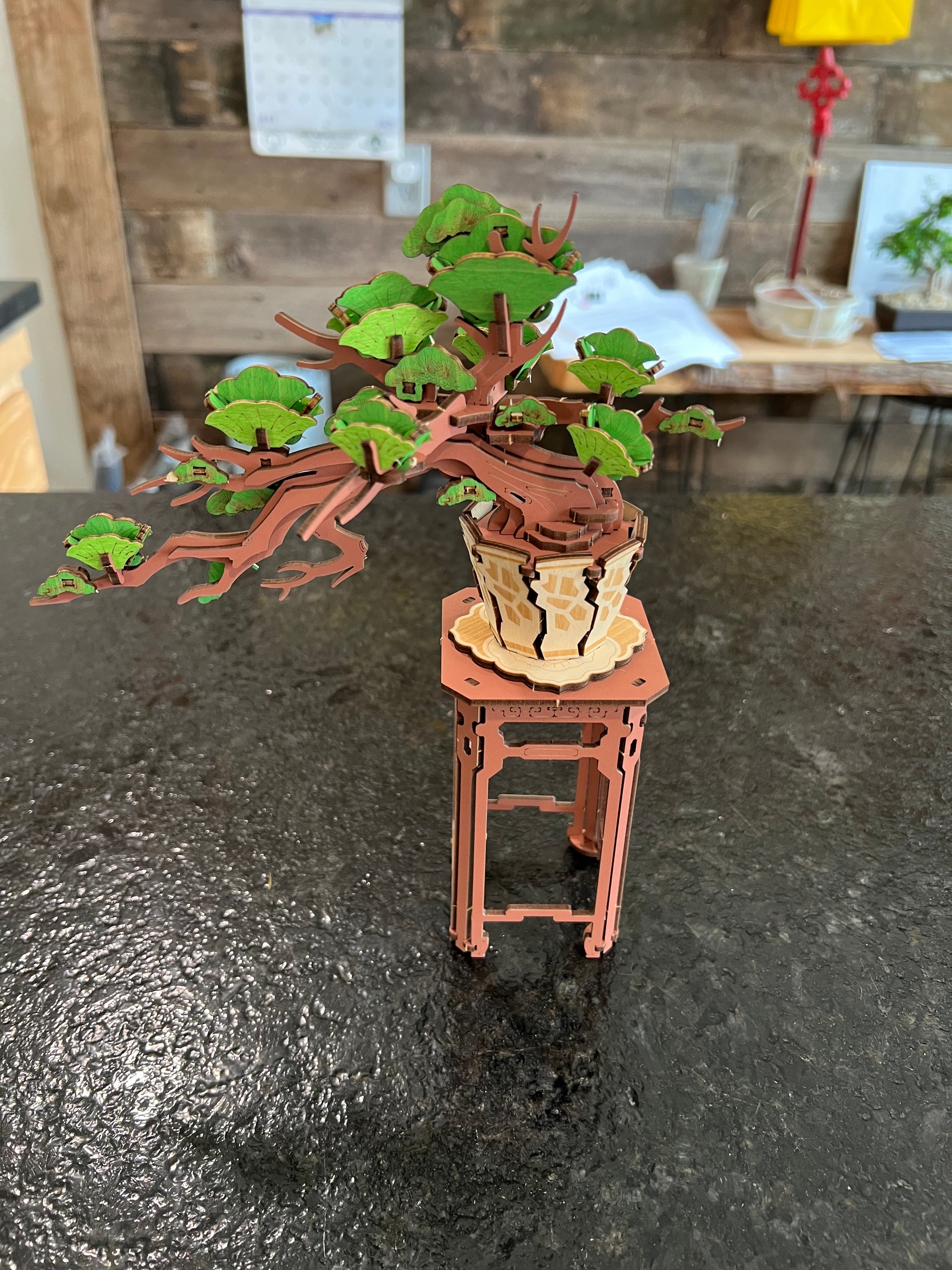 Even if you don't get your hands on a real-life bonsai, the Evergreen Pine Bonsai is here to inspire and delight you. This assembly is set on a tall, delicately carved stand that showcases Japanese-inspired design. The tree itself has interwoven branches and textured leaves that mimic the strength and endurance of evergreen trees. Displaying the Evergreen Pine Bonsai brings the calming presence of nature into your space. Fashioned with loving detail, this charming bonsai is an ideal gift for crafters and nature lovers.